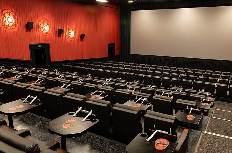 Alamo Drafthouse Cinema's Lake Highlands location has eight theaters with Spectrum Eclipse recliners with custom tables to enhance the viewer's comfort.