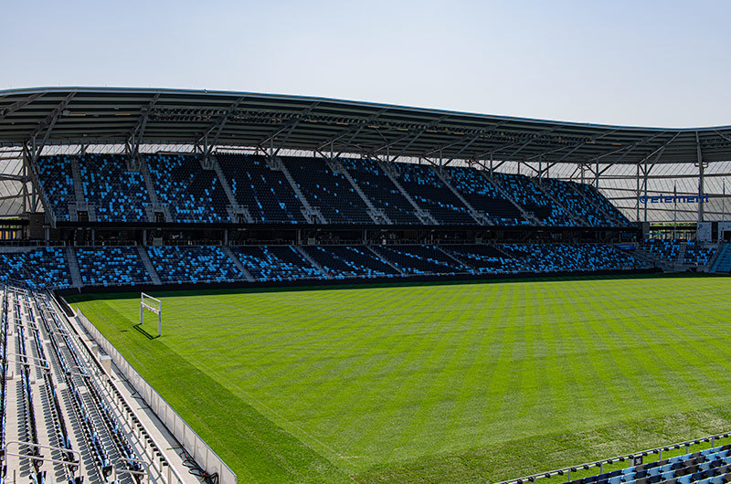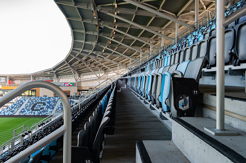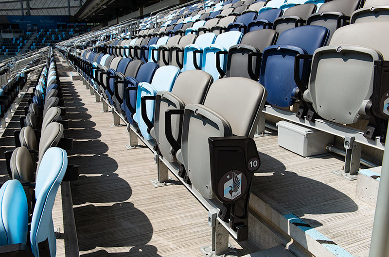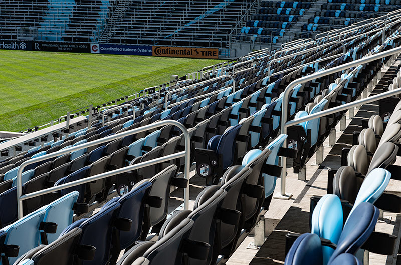 Allianz Field is home to the Minnesota United Football Club and opened in 2019. To help differentiate sections in this beautiful, fan-friendly stadium, Irwin Seating Company supplied three variations of the Solara chair for the Reserved & Premium Reserved seating areas. In addition, Citation & Signature chairs were provided in the suites, box and loge sections. One end zone has the solara chairs arranged with "MNUFC" spelt out in the seating and the east sideline was installed with a loon's wing in the seating - the results are striking!