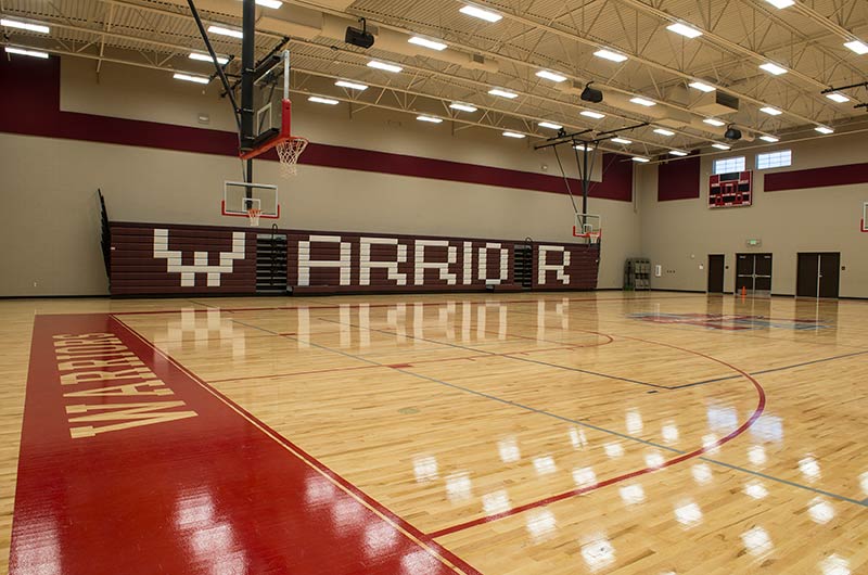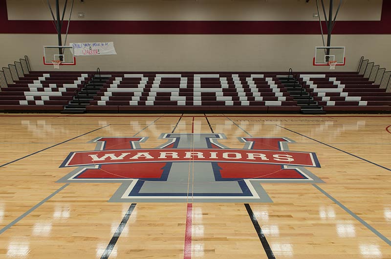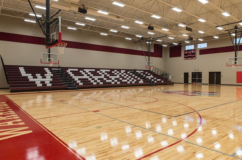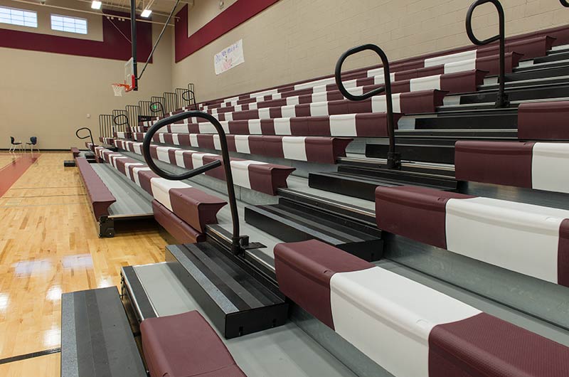 The gymnasium for the American Leadership Academy is installed with model 4500 telescopic bleachers from Irwin Seating Company. The system is a 10 row, 80' system with 10" rise and 24" row spacing for a capacity of just under 500 spectators. The stands feature self-storing end rails, Smart Rails, panelam decking, IDS power and two colors of Infinity Seat Modules for school identification.