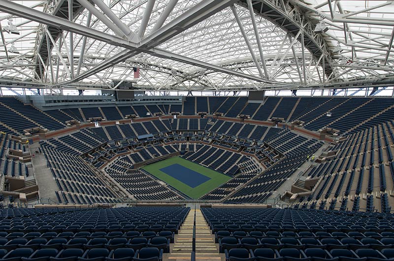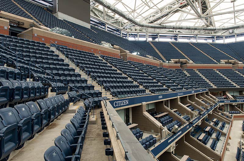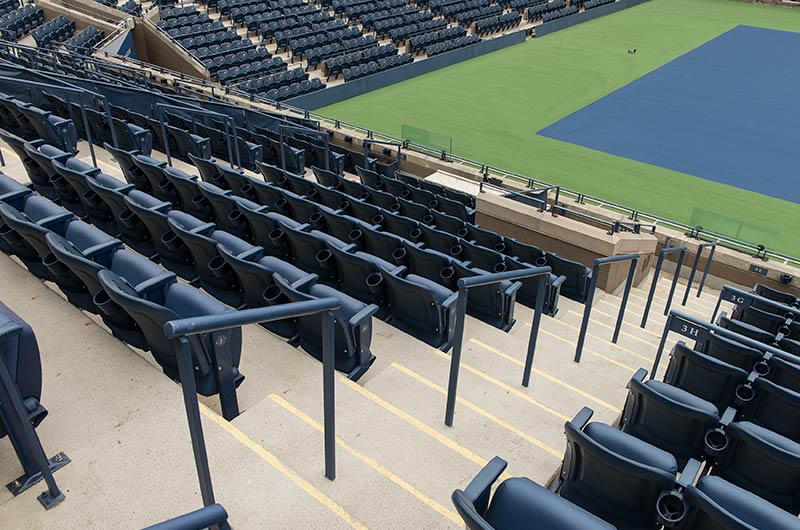 The USTA's Arthur Ashe Stadium opened in 1997 with 23,000+ Patriot chairs from Irwin Seating Company. In 2017 the stadium was renovated and 23,000+ new Patriot chairs were installed to replace the ones that had been in service for 20 years. Most of the seating is model 30.52.00.30, a comfortable, ergonomic-designed chair. Suites are provided with the 30.12.8.8 Patriot VIP and the press area is equipped with folding writing tablets.
