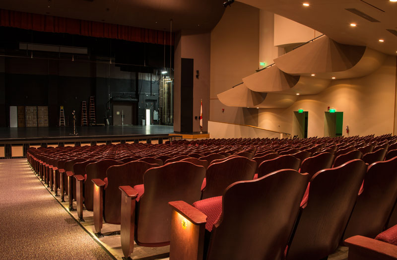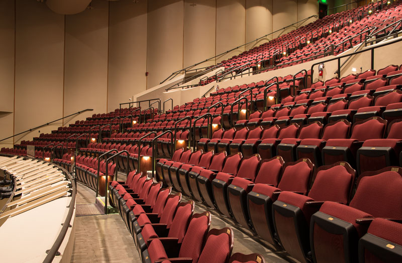 Located on the campus of Edison State College, the Barbara Mann Performing Arts Center has 1,200 model 11.12.66.4 Springfield chairs installed. The seating features comfort curved armrests, No. 12 seats with a loge cushion, concealed aisle lights and donor plates in the back reveal. Seating is finished in black plastic & powder coat, No. 18 Red Teak on Red Oak and Guilford of Maine, Benson, Burgundy fabric.