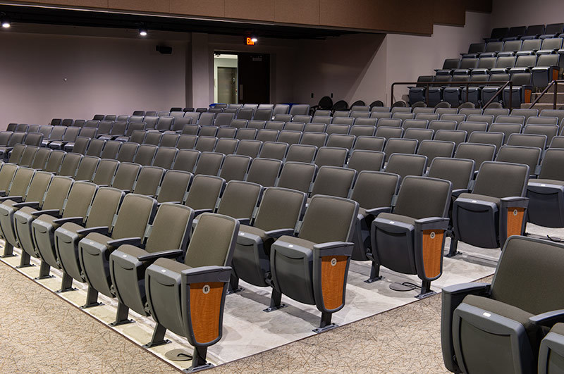 The Beaver Dam Area Community Theatre opened it's new Fine Arts Center in 2019 to better support the arts in the Beaver Dam area. This cozy theatre includes 310 model 90.12.10.4 Citation chairs. The seating features cupholders and flip-up arms for those who may need a little extra room. The chairs are finished with Charcoal Grey plastic and powder coat, Nevamar Grand Island Maple laminate and upholstered with Culp Montgomery Iron.