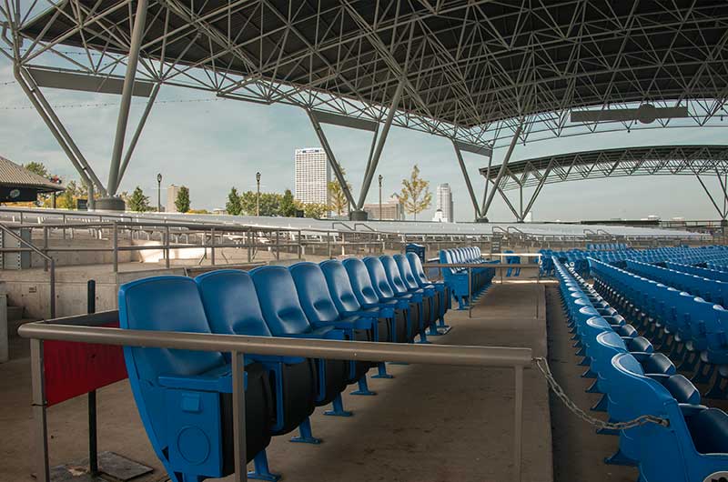 Milwaukee's Summerfest is the world's largest music festival. The grounds feature a number of stages along the West Shore of Lake Michigan. The BMO Harris Bank Pavilion is installed with 2,197 No. 130.45.35.35 Centurion chairs and 52 model 71.12.18.12 Signature chairs.