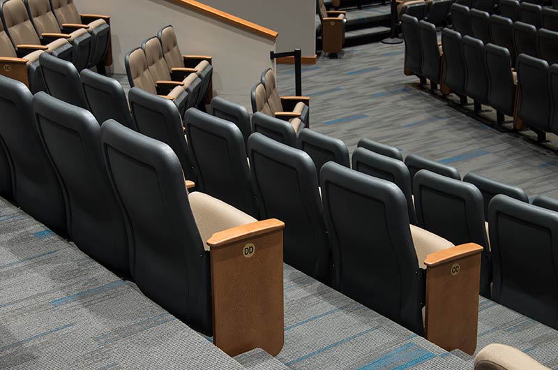 Model 51.12.66.4 Marquee with veneer surfaced aisle panel and comfort curved wood armrests