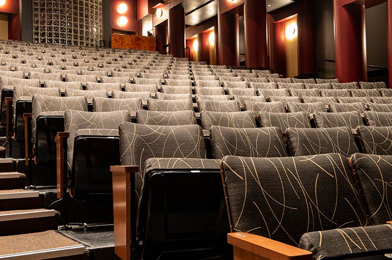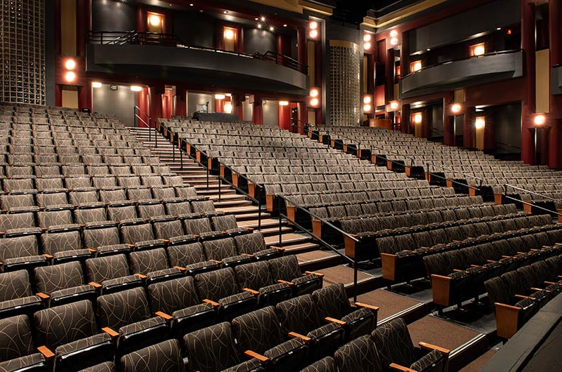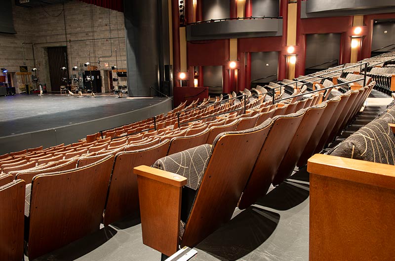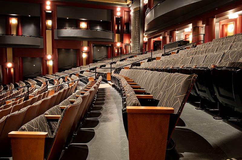 The Irving Fine Arts Center is a 10 acre, comprehensive arts center with two theatres and multiple gallery spaces to showcase cultural treasures. Carpenter Hall is a 700 seat performing arts theatre with great sightlines. The seating installed is Irwin Seating model 8.6.86.12 Meteor with cast-iron standards and the No. 6 steel seat with a loge cushion. The backs are surfaced with Nevamar Sovereign Cherry laminate, Maple armrests and aisle panels are finished with No. 17 India teak stain and the fabric used for the backs and seats is Momentum Drift Incense.