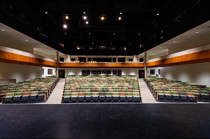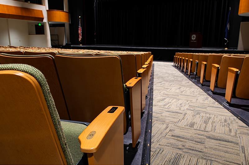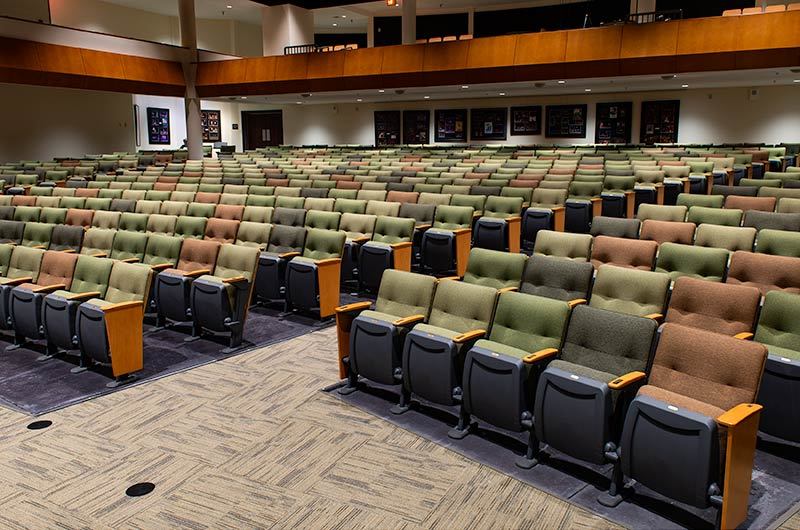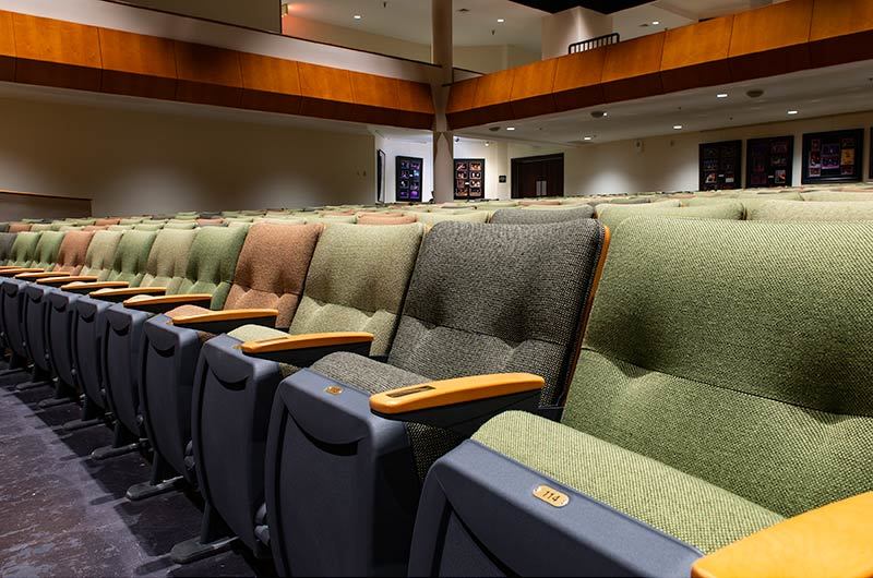 A complete renovation of the Collegiate School's Hershey Center for the Arts Oates Theatre in 2018 included 582 chairs from Irwin Seating Company. The model selected for this beautiful theatre is the 6.12.86.4 Century PAC chair. These chairs were provided with comfort curved solid hardwood arms, foot shrouds, full-fold No. 12 seats with a suspension cushion assembly and donor plates. Plastic and powder coat (paint) is Charcoal Grey, the maple wood was stained with No. 27 Classic Golden. Four Absecon Mills Shire fabric colors were used; Acorn, Limelight, Key Lime and Dill.
