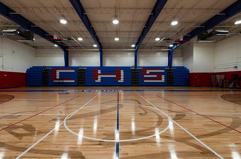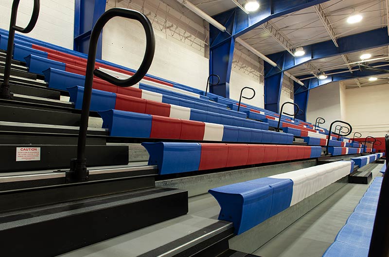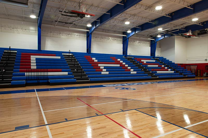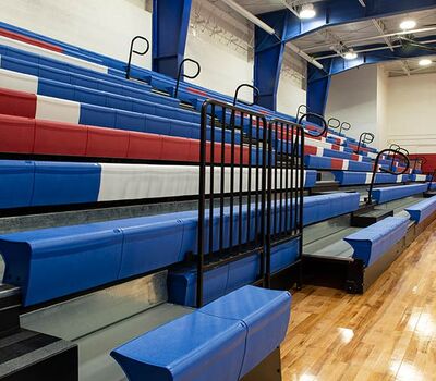 Cooper High School replaced its gym bleachers in 2017 with telescoping stands with Infinity Seat Modules manufactured by Irwin Seating Company. This project included 14 rows with a rise of 10", Smart Rails, recoverable wheelchair spaces and three colors of seat modules.