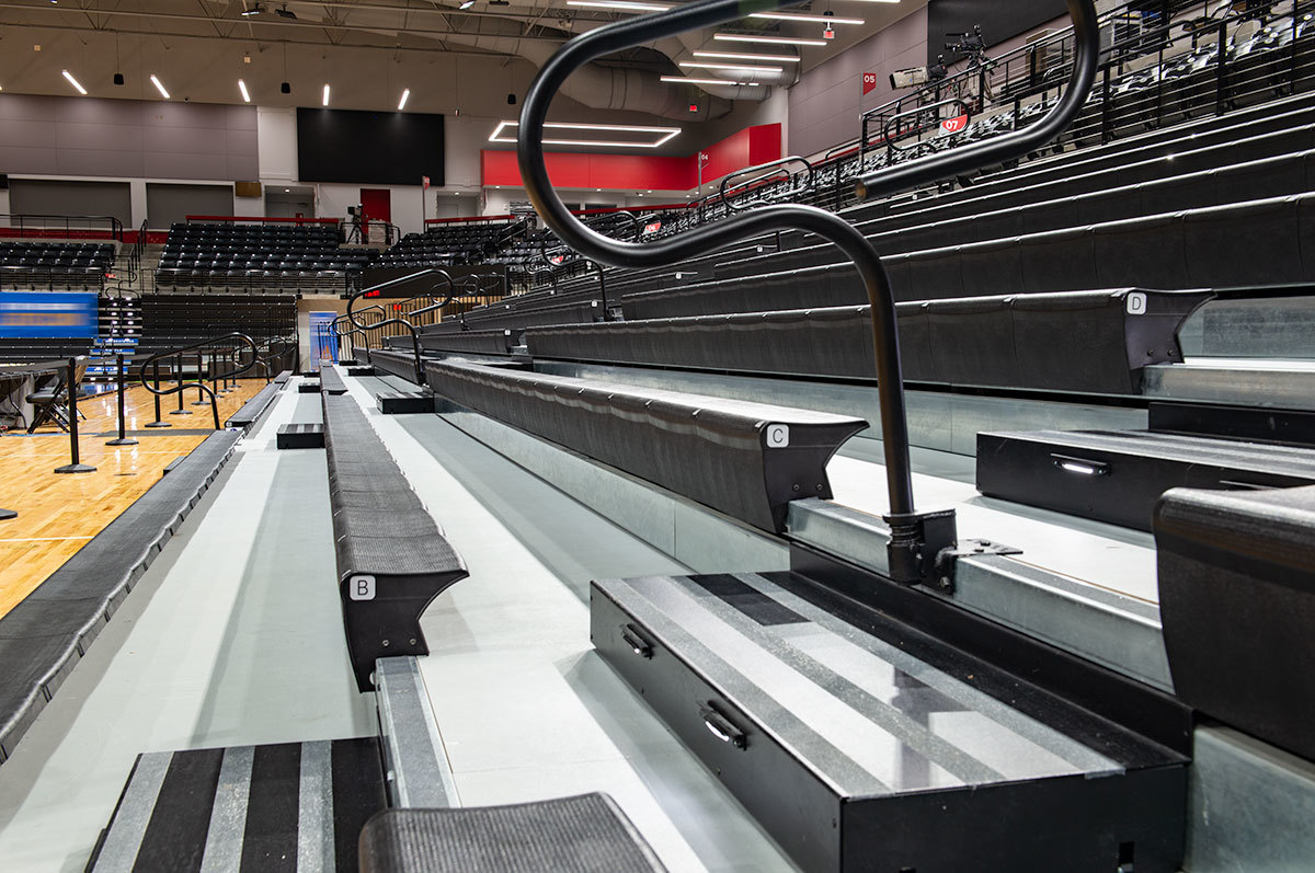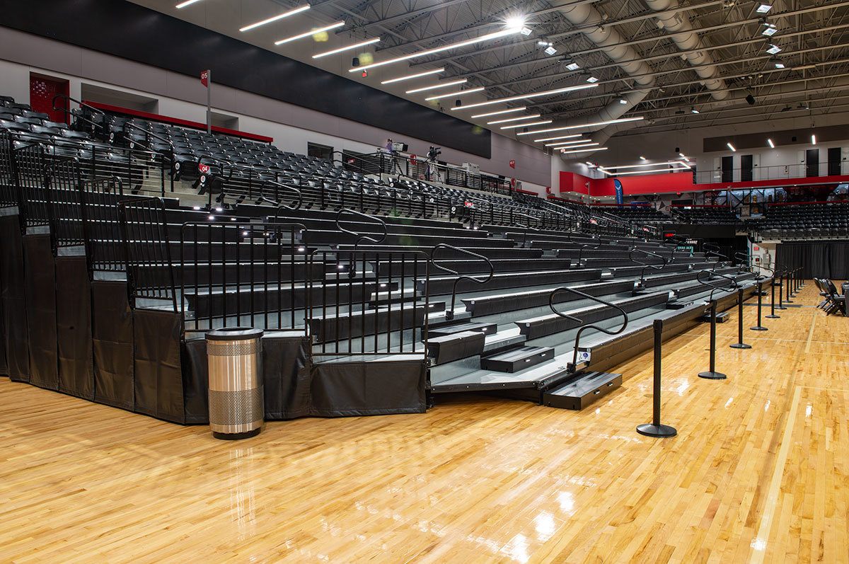 The arena is installed with Irwin Seating's Centurion stadium chair with cast iron standards that also feature cupholders and screen printed logo plates on the aisle ends. The VersaTract system was provided with Infinity Seat modules, panelam decking, Smart Rails and our 3-phase IDS power system.