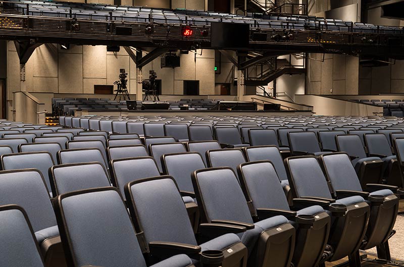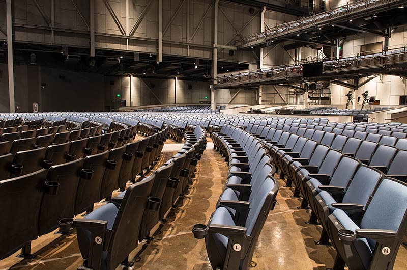 Crossroads Mason is a spacious, comfortable environment that serves the communities northeast of Cincinnati, Ohio. The church is designed with a unique urban aesthetic that includes a coffee bar constructed from four cargo trailers. Irwin Seating Company supplied 2,000 model No. 90.12.00.4 Citation chairs with row letter & seat number plates and cupholders. The seating is upholstered with Guilford of Maine Open House Deep Water Fabric.