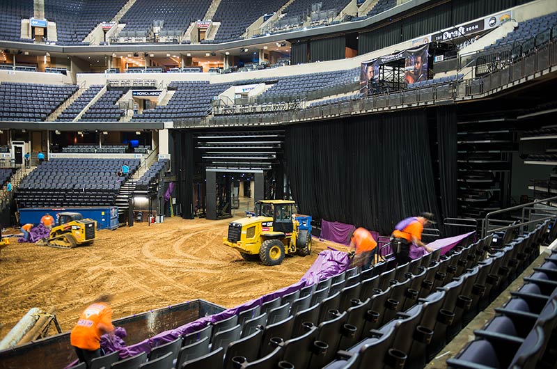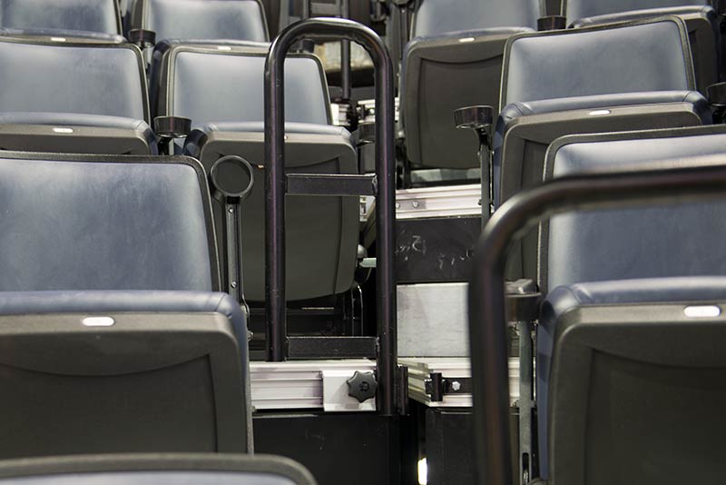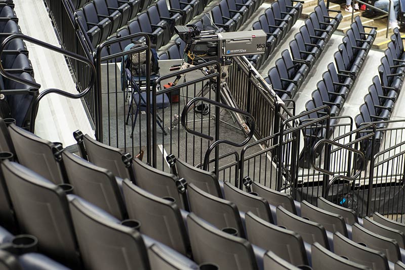 In late 2016 the Arena upgraded the west end zone telescopic units with a new Prestige system from Irwin Seating that greatly decreased the crew's change overtimes. The new system is permanently attached and includes two telescopic tunnels to allow large equipment onto the floor without having to move the telescopic units in and out. In addition, all the railings on the retractable stands feature the new quick-clamp rail option.
