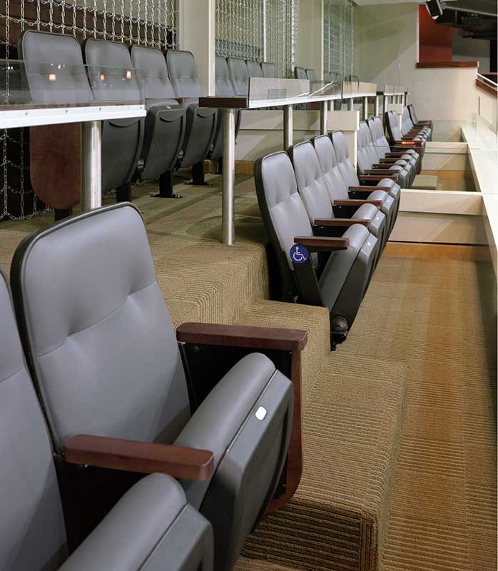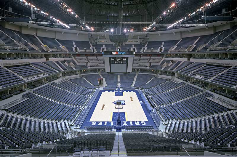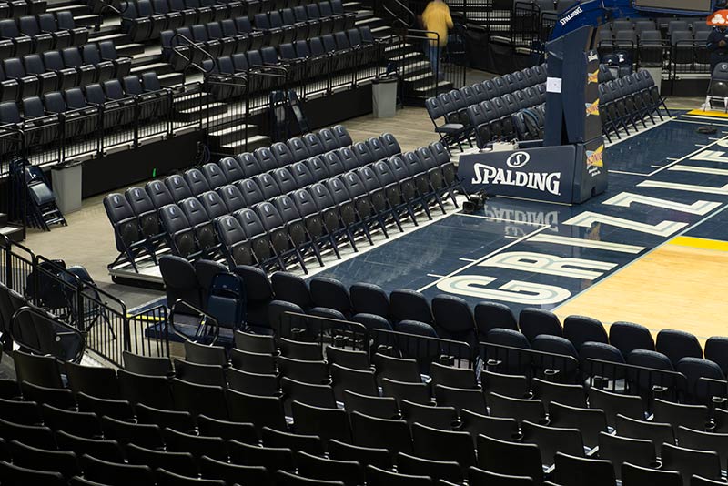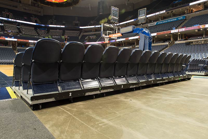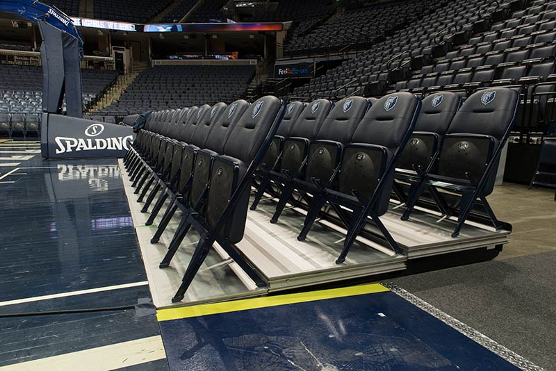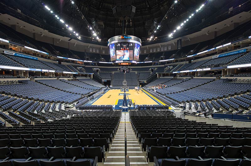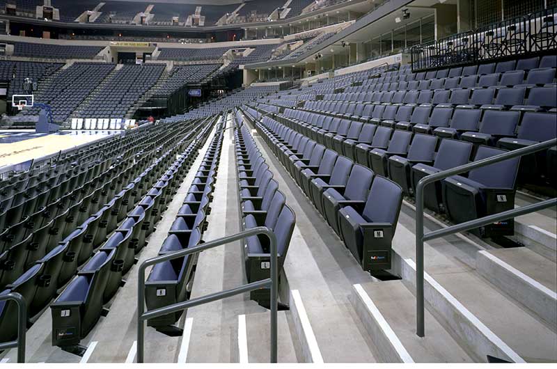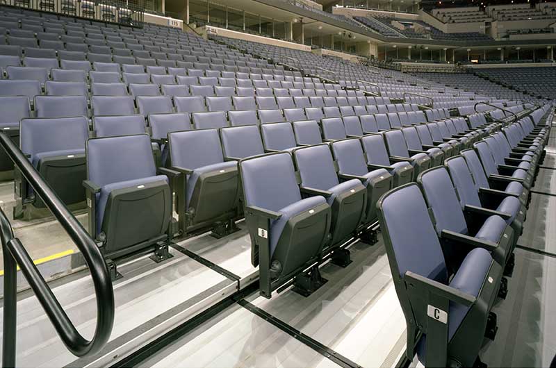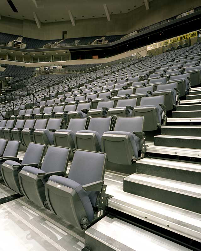 This multi-purpose arena is home of Memphis Grizzlies & University of Memphis basketball teams. The arena has a capacity of 18,000+. Irwin Seating Company provided both the fixed stadium seating and telescopic platforms. The telescopic units feature forward-fold Citation chairs and are provided in a variety of wall-attached and portable units that allow for a variety of event configurations. Fixed seating in the general and club sections is 4.12.18.8 Citation with a custom logo aisle panel. Suites are installed with model no. 51.12.66.8 Marquee.