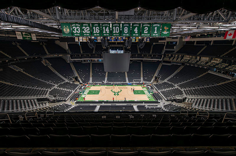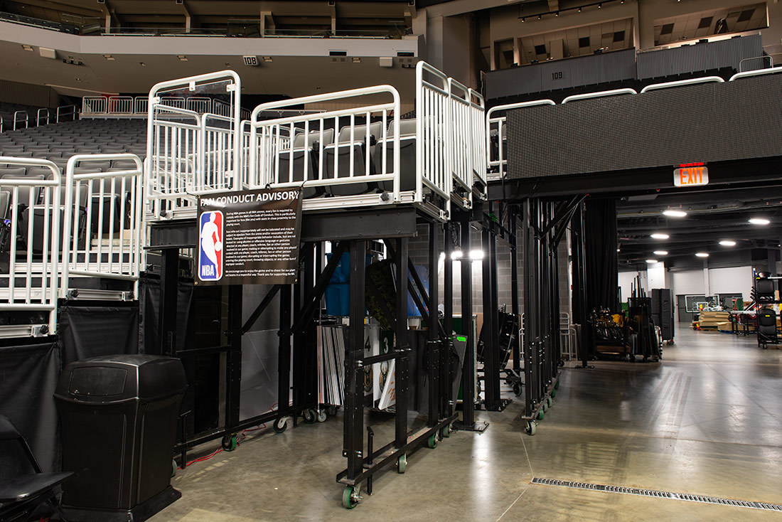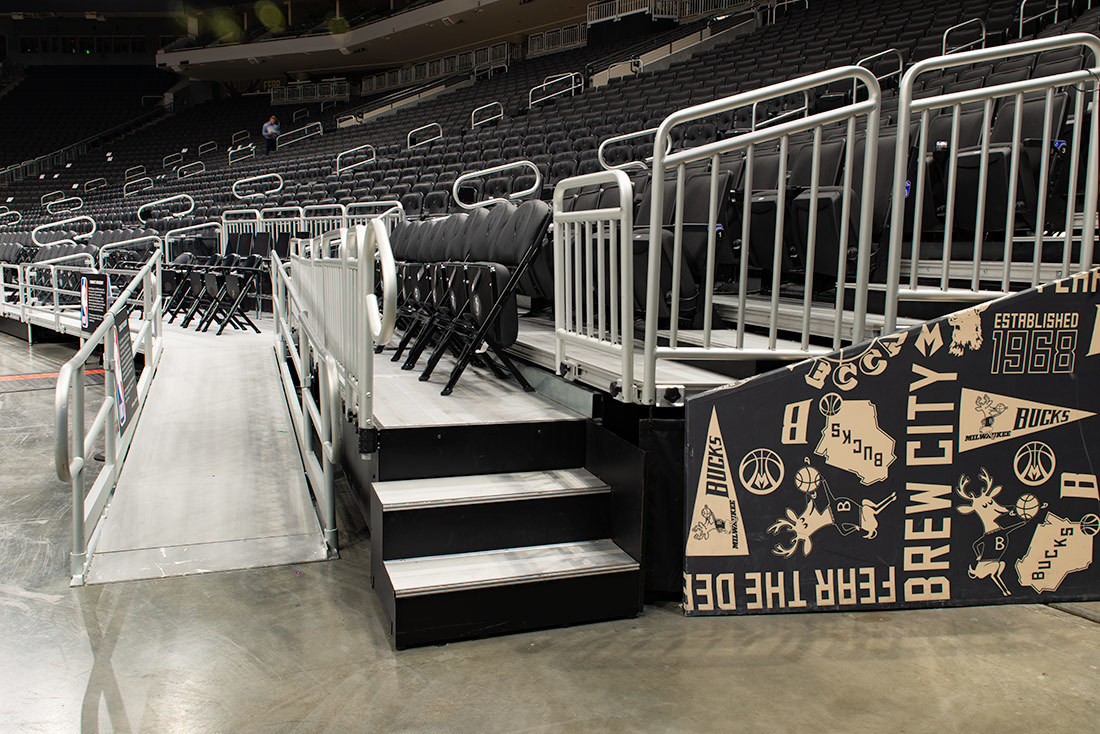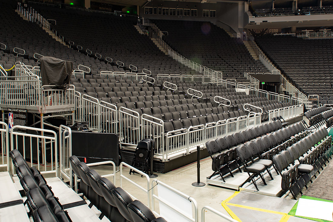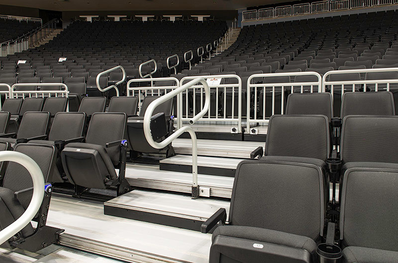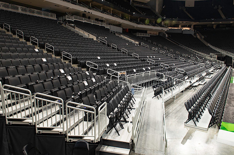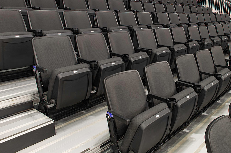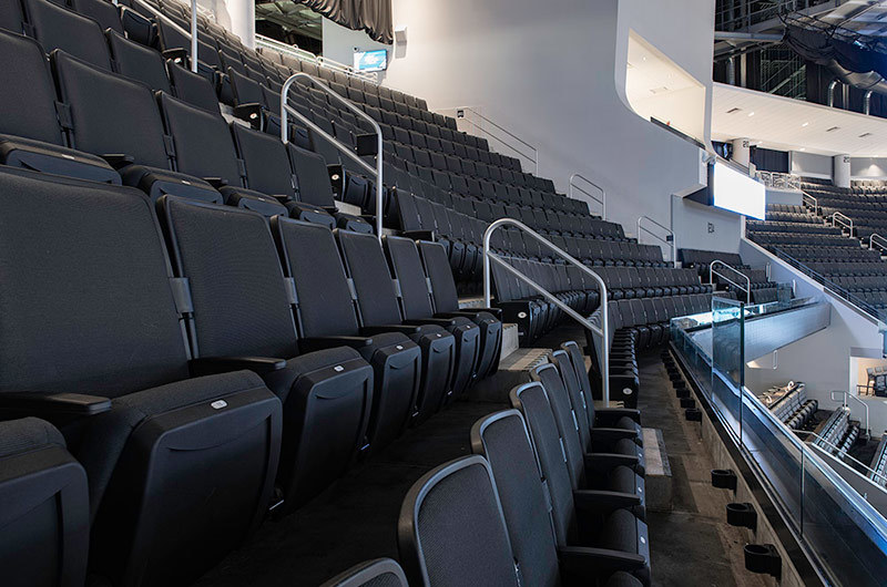 Fiserv Forum is home to the Milwaukee Bucks and Marquette Golden Eagles. This beautiful, spacious arena also hosts a variety of other events like concerts, dirt shows and even the 2020 Democratic National Convention. To assist with the multitude of floor configurations needed for the various events Irwin Seating Company has provided a wide range of telescopic solutions. This includes four-row, dual-rise systems in both end zones, standard recessed telescopic platforms and a variety of portable solutions. The majority of the telescopic equipment is supplied with Prestige nose-mount or forward-fold chairs that provide enhanced comfort and continuity with the fixed seating. Differentiation between the various ticket levels is done with three chair models; Citation (general), Marquee (club) and Signature (suite). To provide great sightlines and bring the fans closer to action the risers in the upper bowl were constructed with a generous height; to provide a sense of security and help with comfort, high-back Citation chairs were used in these areas.