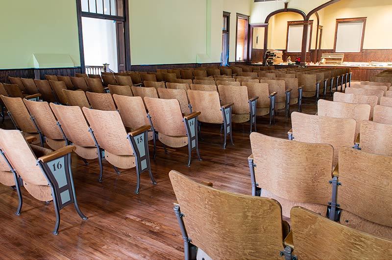 For the 150th anniversary of Freed Hardeman University, Old Main Hall was renovated in 2019. This building was constructed the same year Irwin Seating Company was founded, 1907! The renovation of this magnificent National Historic Landmark included the restoration of seating in Chapel Hall which was from the late 1920's or early 30's.
