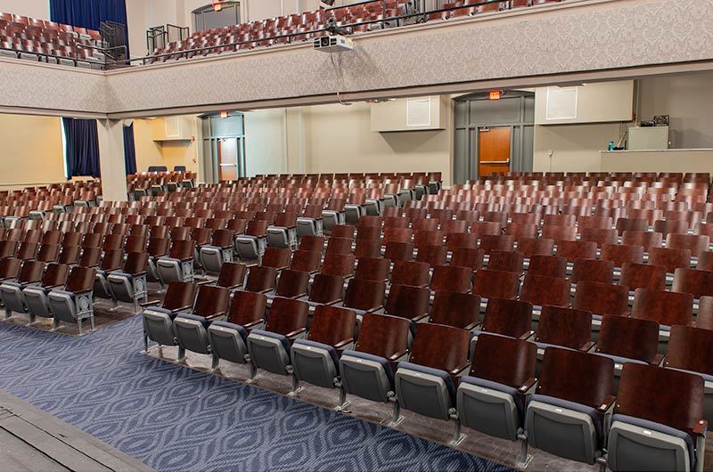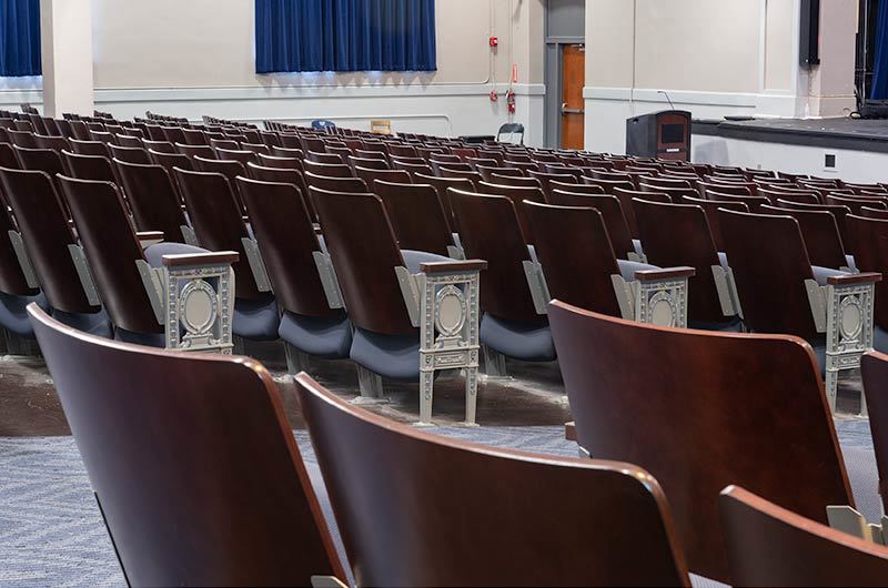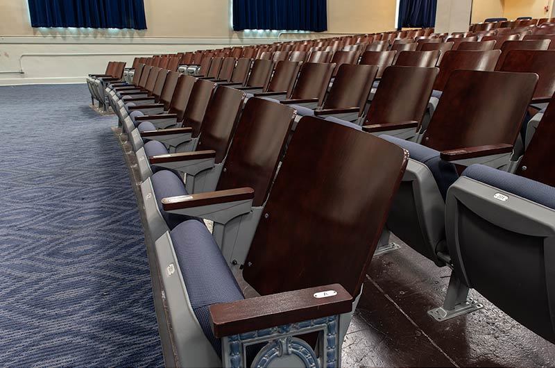 Located in downtown Nashville, Hume-Fogg's intent is "that every Hume-Fogg student graduates high school and enters college with a love of learning, a knowledge of self, and a respect for others and ideas, resulting in academic success, personal fulfilment and in meaningful and sustained contributions to society." In 2017 Irwin Seating Company manufactured just over 1,100 model 1.12.141.4 Crusader chairs to reseat the auditorium. This chair provides a great mix of traditional, period styling with new comforts like the padded, upholstered seat. Maple backs and armrests are finished in No. 22 Classic Rosewood, plastics and powder coat (paint) is Cadet Grey and the fabric used is Momentum, Tradition, Distance.