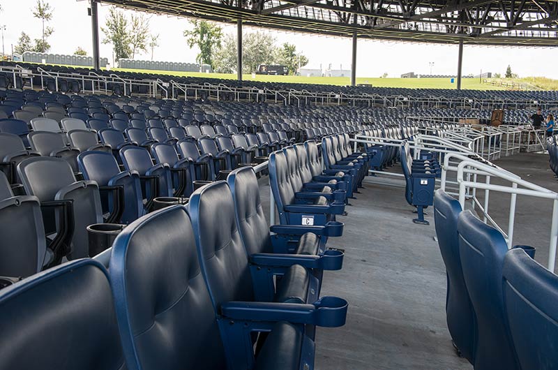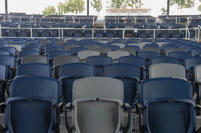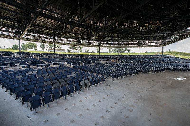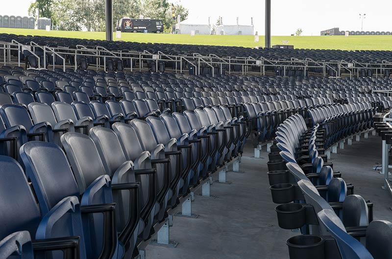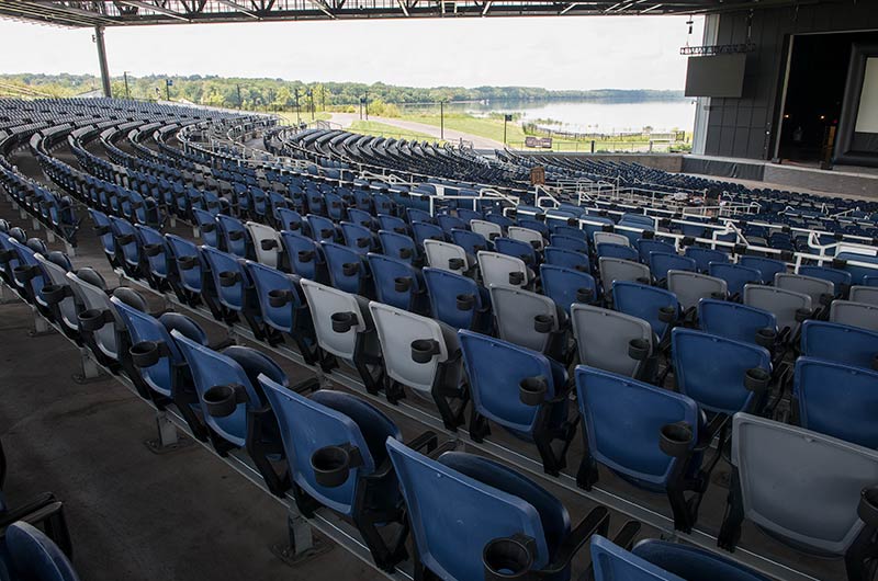 With a total capacity of 17,500 and premium seating under the canopy, Lakeview Amphitheater is a great setting for a concert! Two fixed seating models from Irwin Seating Company were installed: