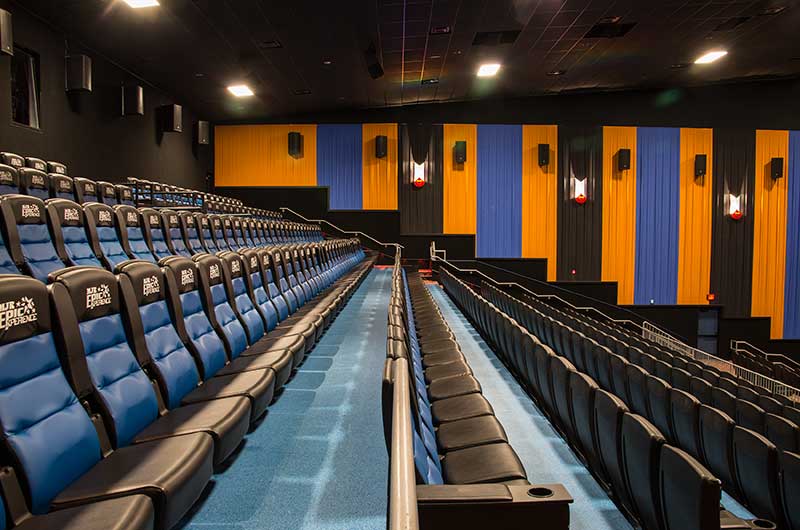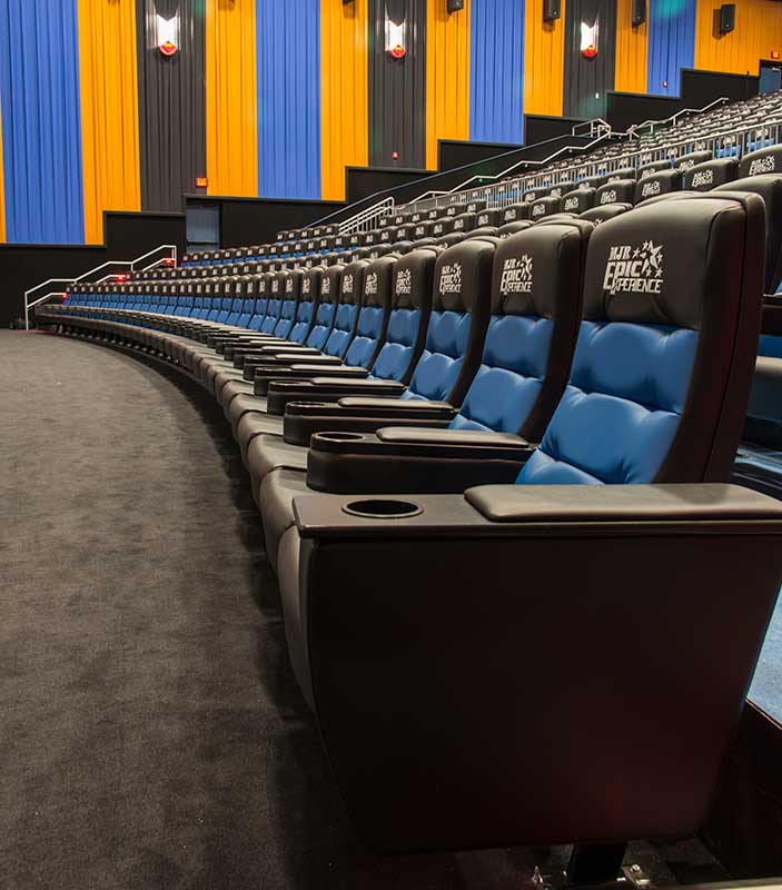 MJR Theatre's Grand 16 features an EPIC auditorium with a four-story tall screen. To ensure an epic experience the first row of seating is 30 feet from the screen to provide great viewing for everyone in the theatre. To further enhance the experience, the EPIC theatre is installed model 72.84.83.84 Signature Luxury Club Seating. Other theatres in the complex are installed with model 71.12.2.2 Signature Rocker.