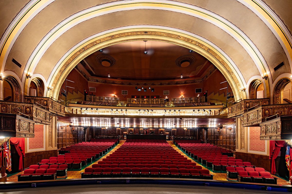 The Murphy was built by the former owner of the Chicago Cubs, Charles Webb Murphy. Mr. Murphy was from Wilmington and wanted to provide the community with a world-class theatre like those found in New York or Chicago. Recent restoration activities included a change to the balcony treads to make that area more comfortable and the replacement of all the fixed seating with Rialto chairs from Irwin Seating. The seating includes a custom cast logo on the aisle standards, cupholders and concealed aisle lights. The seating is finished with black plastic and powder coating (paint), No. 24 Classic Walnut on Maple wood stain and Absecon Mills, Craze, Red Rose fabric.