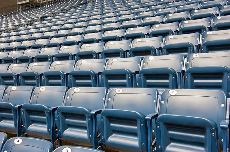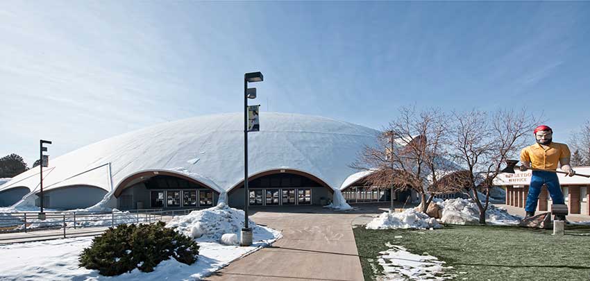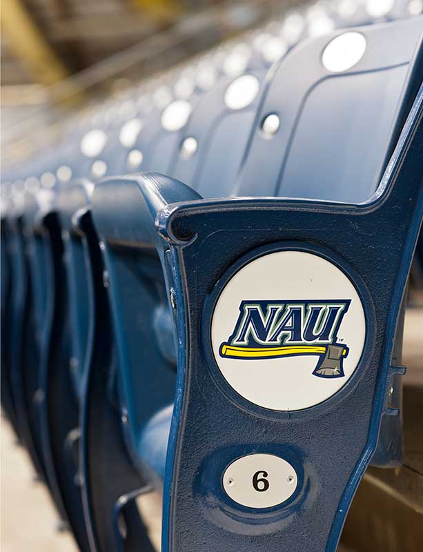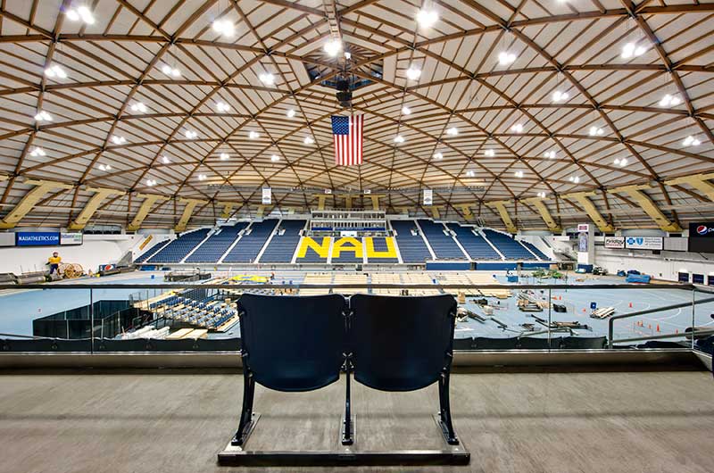 Northern Arizona University's Walkup Skydome is the third largest clear-span timber dome in the world. It opened in 1977 and provides facilities for football, basketball, indoor track and a variety of other university and community activities. In 2011, Irwin Seating supplied 10,000 new 130.45.35.35 Centurion chairs in two colors to spell out NAU in the seating area. The aisle end standards are provided with a screen printed logo plate.