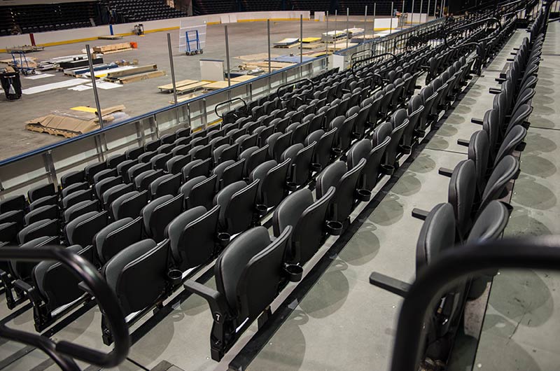 The Coliseum first opened in 1972, after an 18-month, $165 million renovation NYCB LIVE, home of the Nassau Veterans Memorial Coliseum opened on April 5, 2017, with a concert by Billy Joel. As part of the renovation, new fixed and telescopic seating was installed in this storied venue. Fixed seating is model 90.12.00.4 Citation and the telescopic platforms are supplied with upholstered Integra chairs.