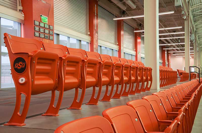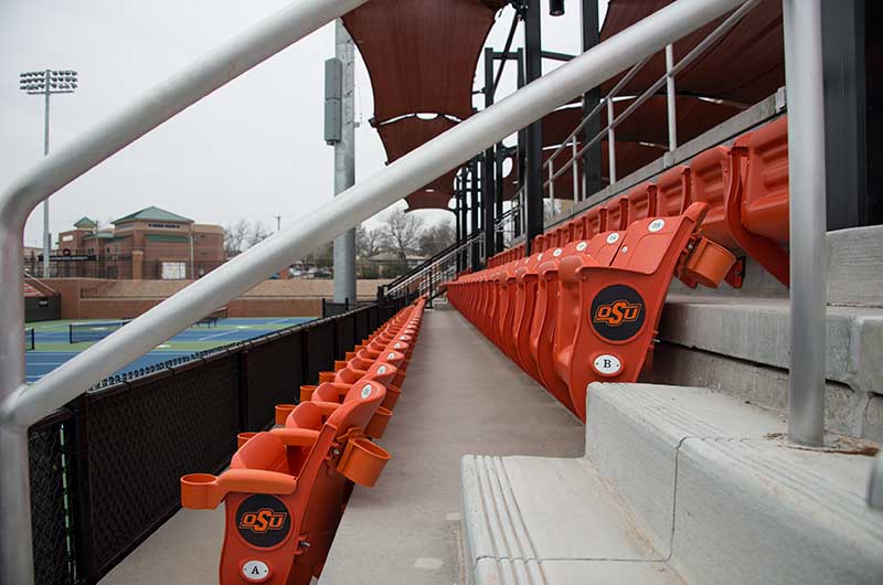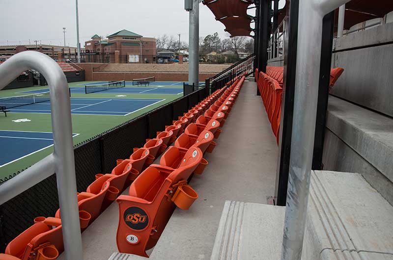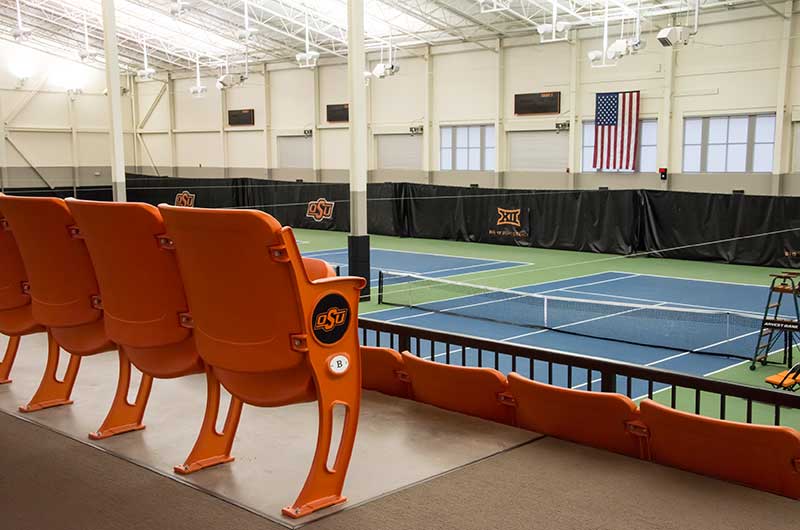 Michael and Anne Greenwood Tennis Center at Oklahoma State University opened in the spring of 2014 and provides the men's and women's tennis teams with a world-class facility. Both the outdoor and indoor courts are installed with 130.45.35.35 Centurion chairs in a custom color.
