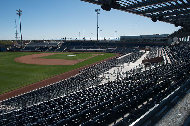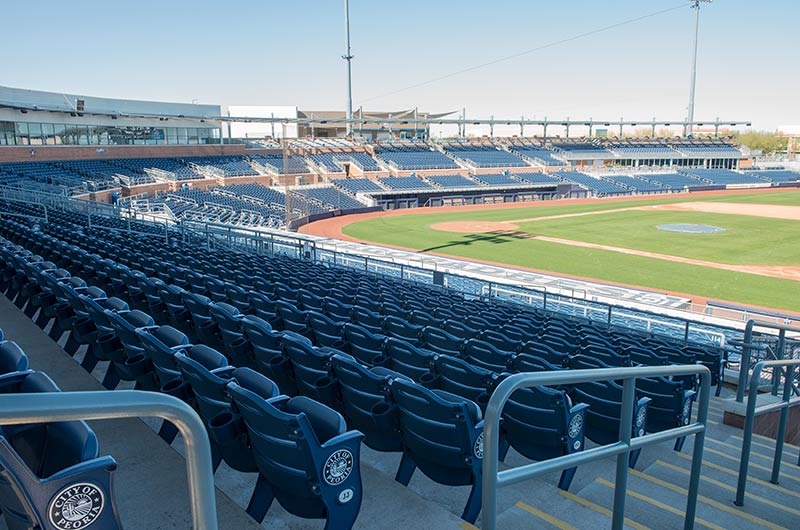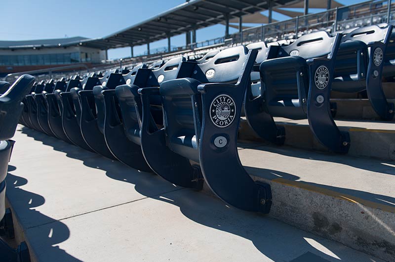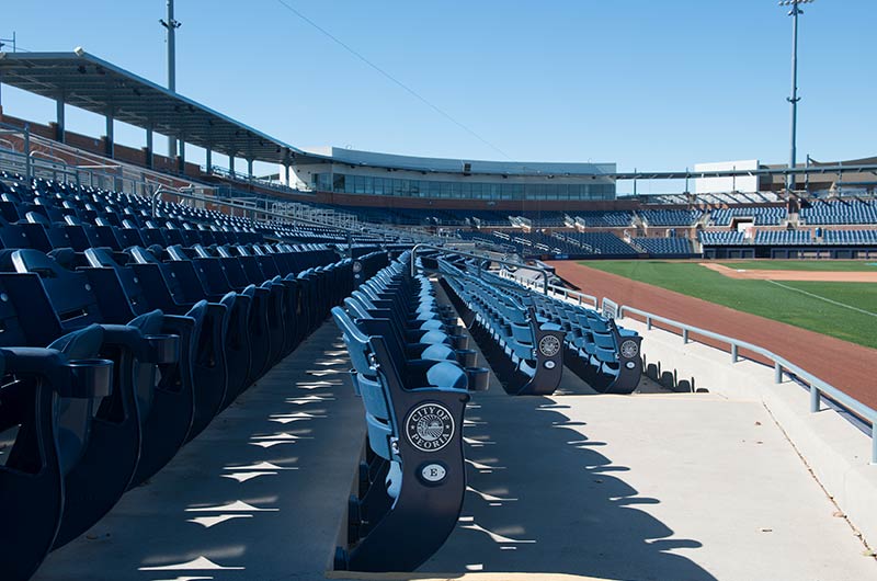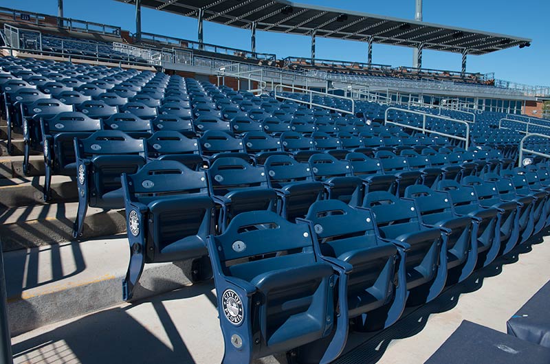 This ballpark is used by the San Diego Padres and Seattle Mariners for spring training as well as their minor league teams. Irwin Seating Company has installed more than 6,000 Senator chairs at this gorgeous stadium. Some of the chairs are installed with re-directed standards for improved sightlines. The seating also features screen-printed logo plates on the aisle end standards and rear mount cupholders. Premium locations are provided with our No. 12 upholstered seat.