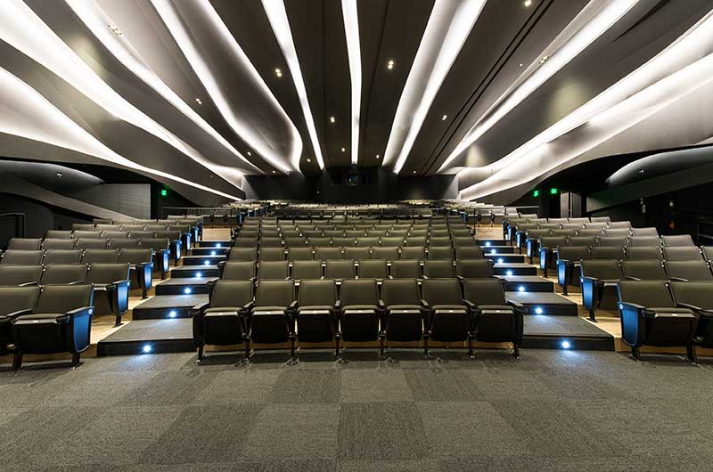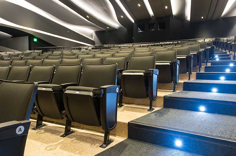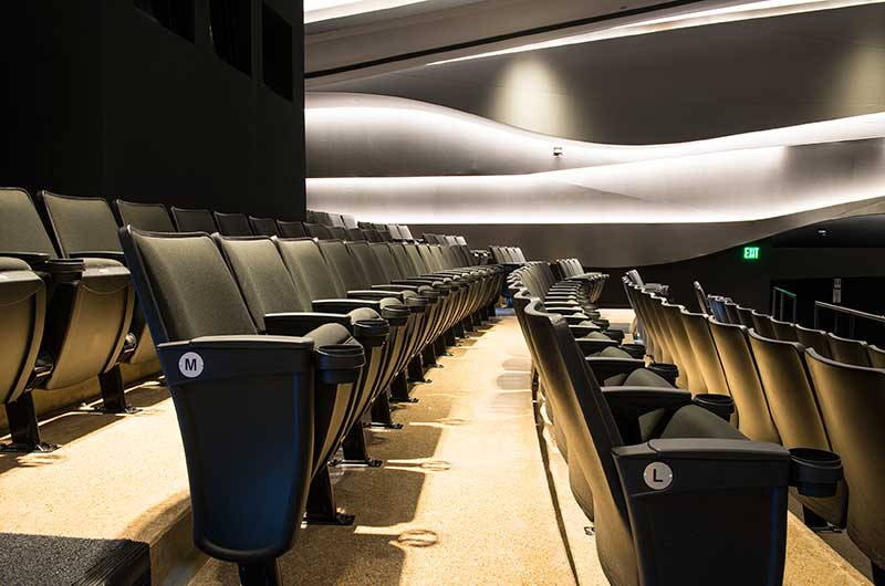Recognized for its sustainability, the Morphosis Architects designed building includes a 296 chair state of the art theatre. These Citation chairs are upholstered with Momentum Origin Jet fabric and include cupholder armrests, row letter and seat number plates.