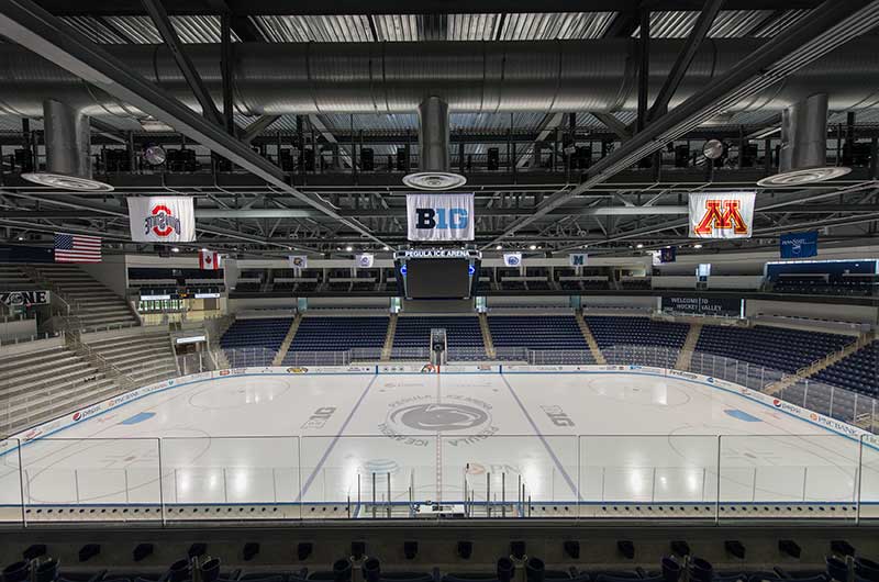 Penn State University's Pegula Ice Arena is dedicated to ice sports and is open year-round for the community to enjoy. The main arena seats 5,700 spectators with most seating being model 30.52.00.30 Patriot. Club area is seated with 90.12.00.4 Citation and the suites are installed with custom 51.12.00.4 Marquee chairs.