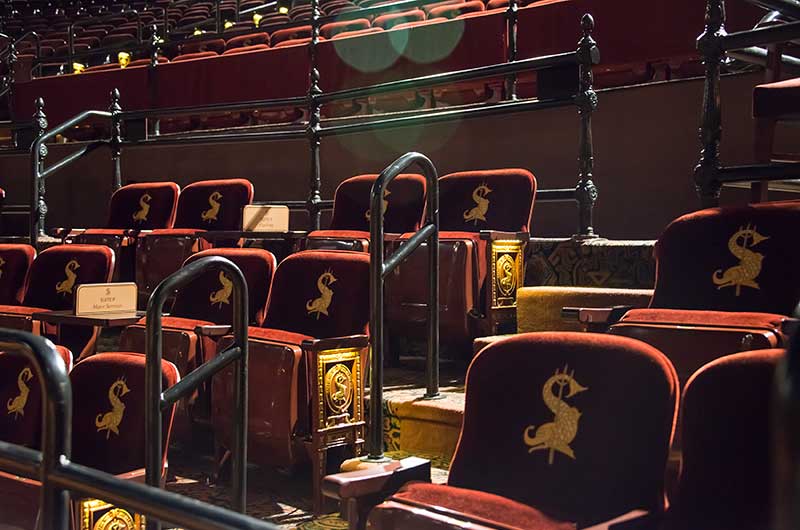 Irwin Seating provided 2,721 model 29.6.141.8 Rialto chairs with a custom logo cast into the aisle standards. In addition, drink tables were provided for the suite level at the front of the balcony. Chairs are upholstered in a custom JB Martin Toulouse velour with the suite chairs also featuring an embroidered logo. Maple components are stained with our No. 22 classic rosewood, and steel is in a custom powder coat (chestnut brown).