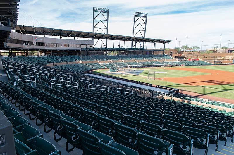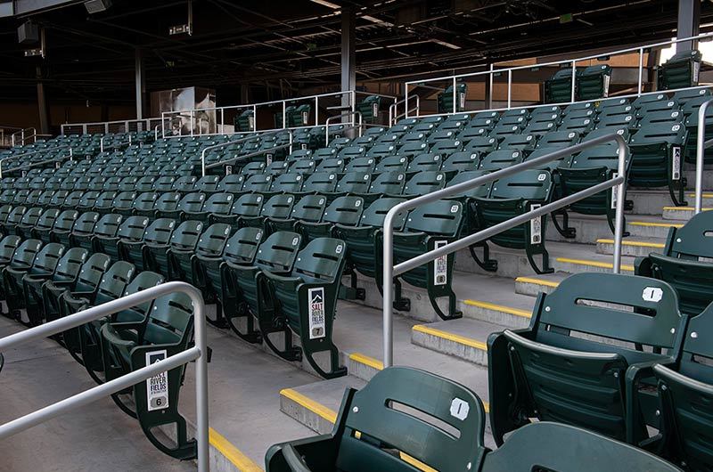 Salt River Fields his the spring training home of the Arizona Diamondbacks and Colorado Rockies and is installed with American Stadium Chair model 507.507.202.202 now manufactured by Irwin Seating Company. This project included a custom logo plate, redirected chairs and rear mount cup holder.