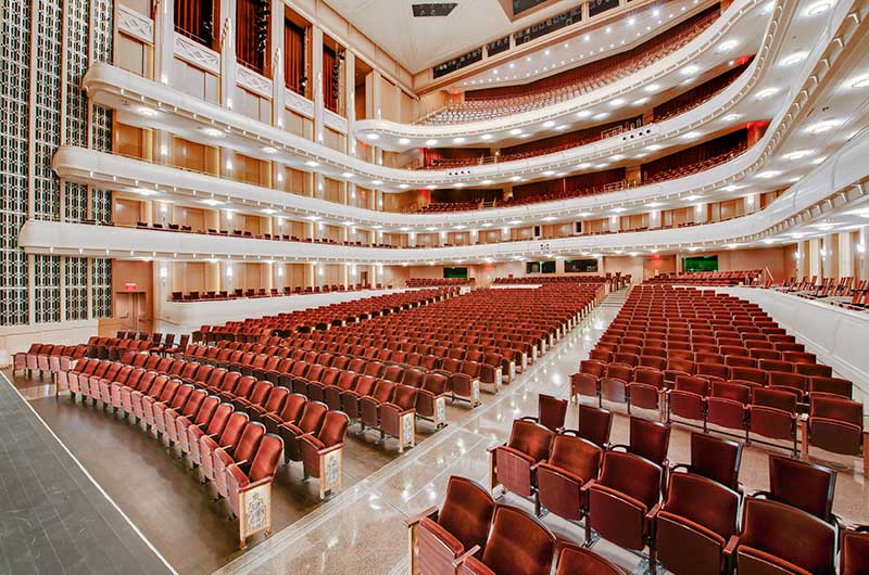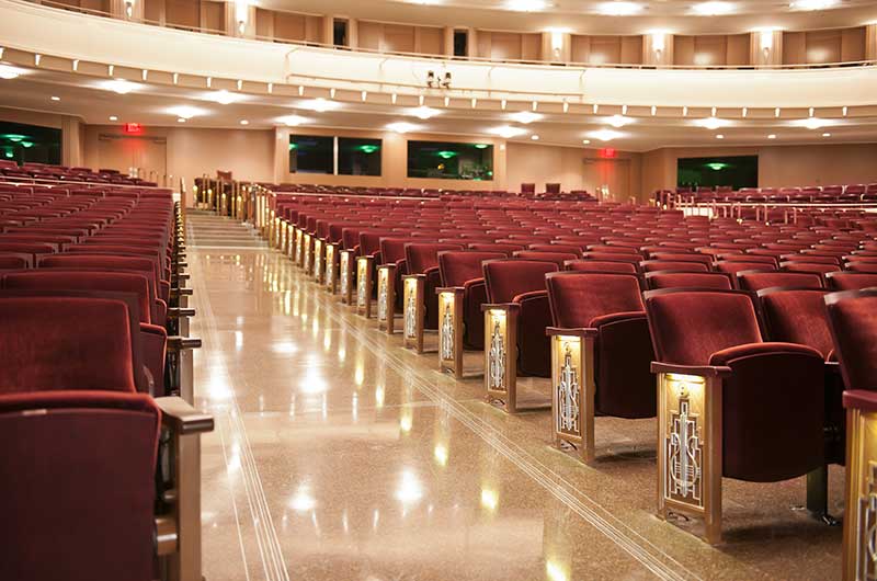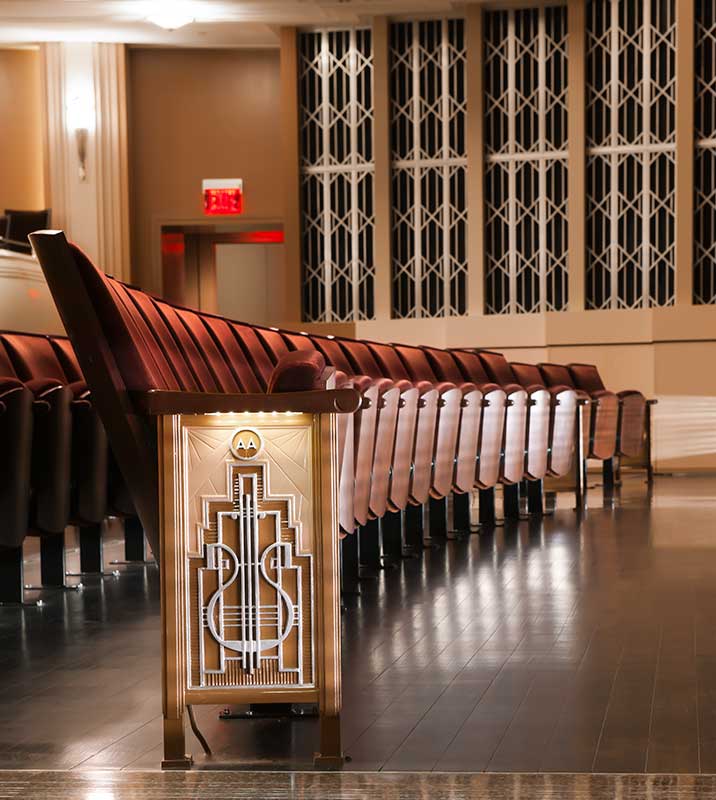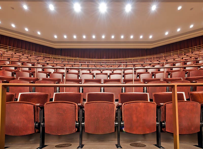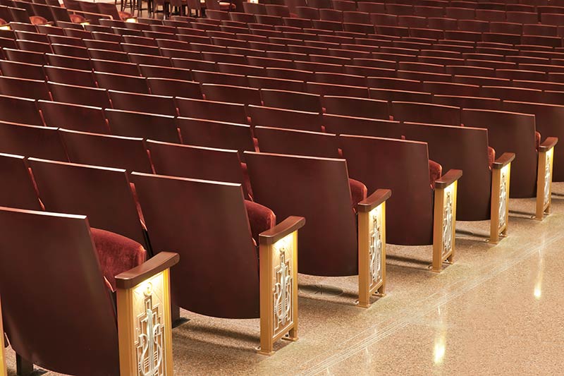 The Smith Center is a world-class performing arts center with multiple venues. Reynolds Hall is the Center's largest venue with 2,056 model 27.17.XX.17 Allegro chairs. These chairs were designed with a beautiful custom cast aisle end standard. The seating is upholstered with a custom Mohair from KM Textiles. Backs, seats and armrests were finished in a custom wood stain.