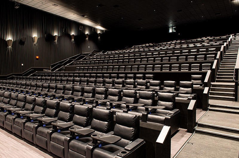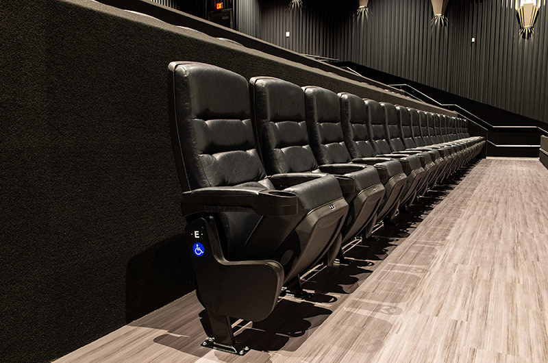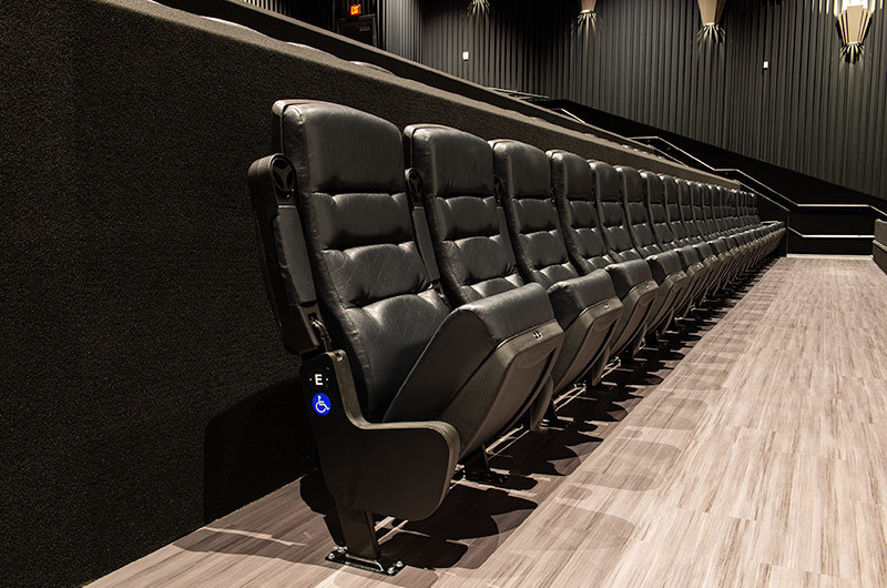 Celebration Cinema at Studio Park is part of a luxurious complex in downtown Grand Rapids with nine screens. Each auditorium was installed with a mix of Spectrum Eclipse ZG4 Recliners and model 72.12.2.2 Signature Rockers to provide different seating options to customers. The recliners feature large swivel tables and heated backs to enhance the experience. To assist with cleaning and set up between shows each auditorium is equipped with remote open/close for the Spectrum Recliners. The rockers were provided with sculpted loge seats and flip-up cupholder armrests.