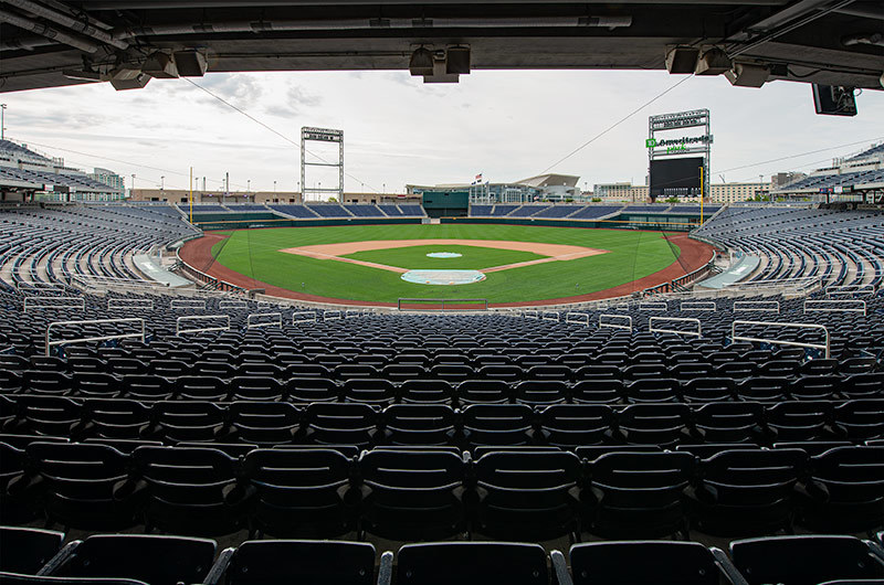 TD Ameritrade Park is home of the College World Series and the Creighton Blue Jays. The park has a capacity of 24,000 and the majority of the seating is model 507.507.202.202 American Stadium chairs. These chairs feature rear cupholders, number and letter plates and aisle end standards with an integral cast logo.