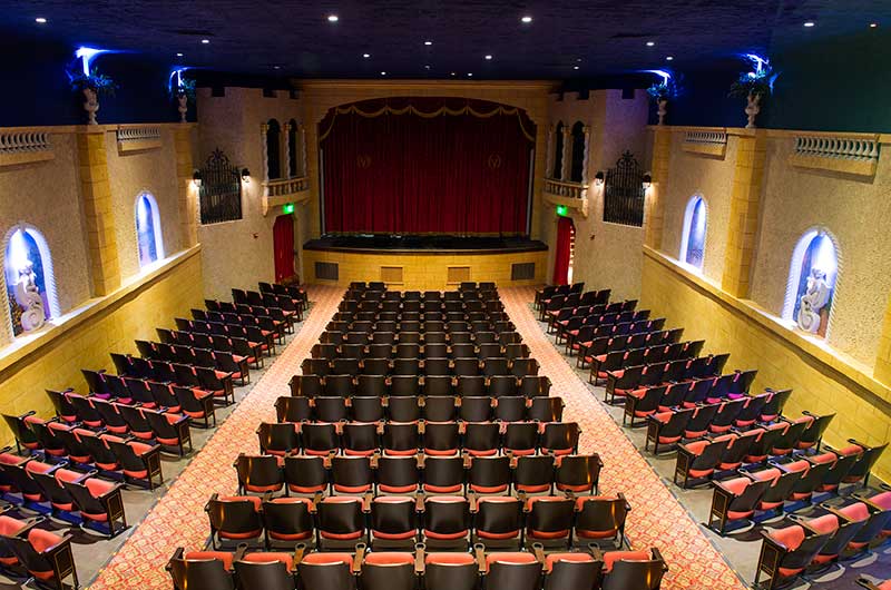 Unlike many theaters that opened in the late 20s, the Tivoli began as a movie house operational until 1999. In 2012 this mission-style gem was purchased, and restoration of the theatre began. The revival of the Tivoli included 291 new chairs from Irwin Seating Company.