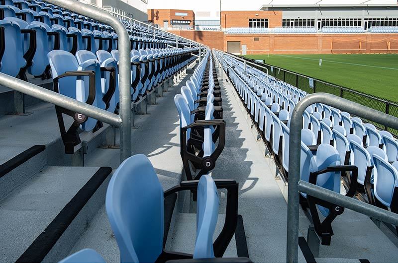 This state-of-the-art stadium includes 1,115 model 30.52.00.30 Patriot chairs installed on the aluminum bleachers and 2,934 beam mount Solara chairs installed on the concrete risers. Both models were provided in a custom Carolina Blue.