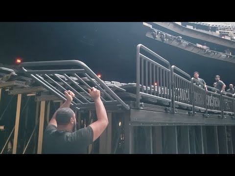 STEP 25. Lift Chairs into upright and locking position. Make sure the last row chair on the concrete is also in the upright position and pinned as it may be rotated forward by operation staff.