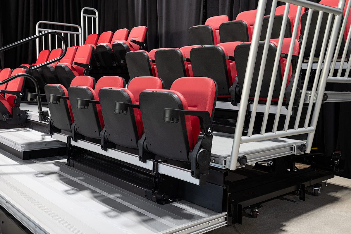 Luxx rail mount chairs are available with the industry’s first semi-automated chair fold down telescopic system to create a superior experience with faster changeovers and increased ROI.