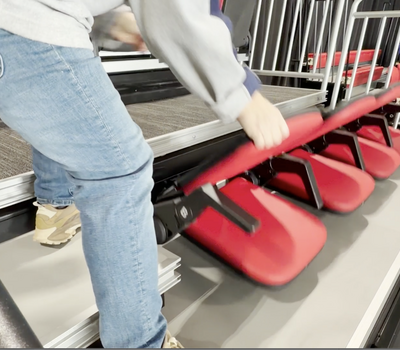 - Spring assist mechanism allows a single operator to store / deploy up to eight chairs at one time